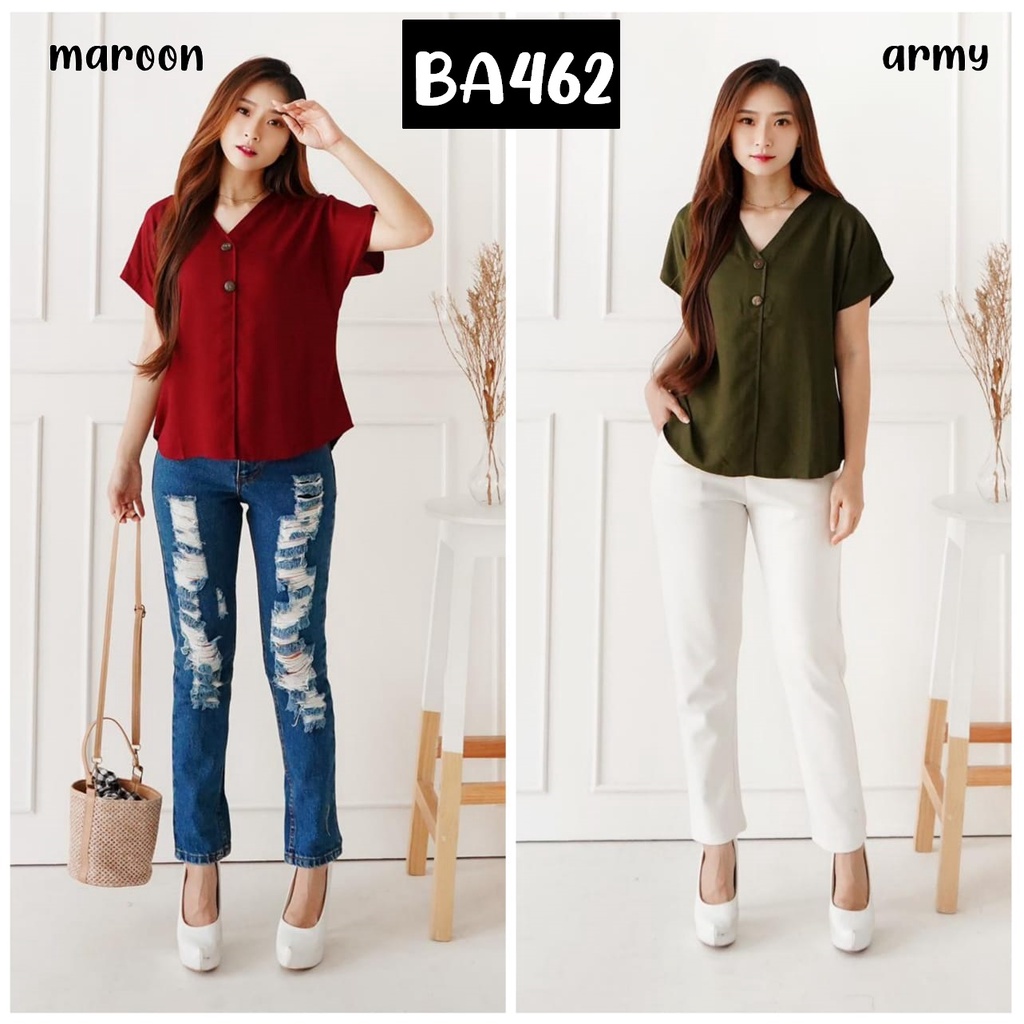Alasan kenapa harus beli Blouse wanita / cewek berkerah polos lengan pendek oversized pergi jalan santai kekinian -462 sekarang