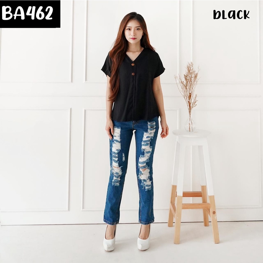 Blouse Bloni Full Kancing Daily Busui Wanita Blouse Moscrepe Premium