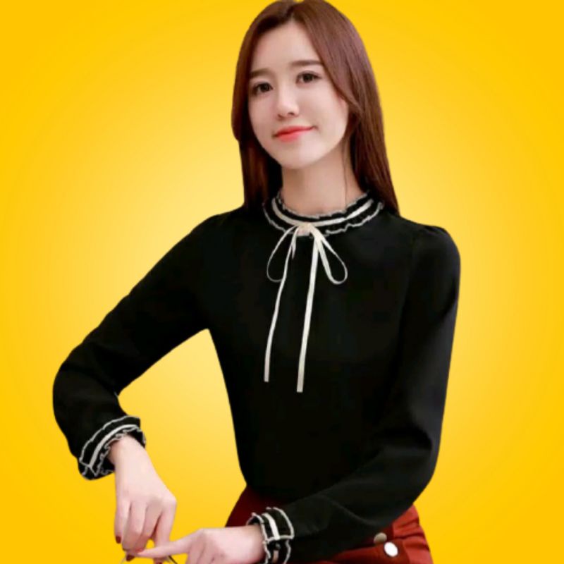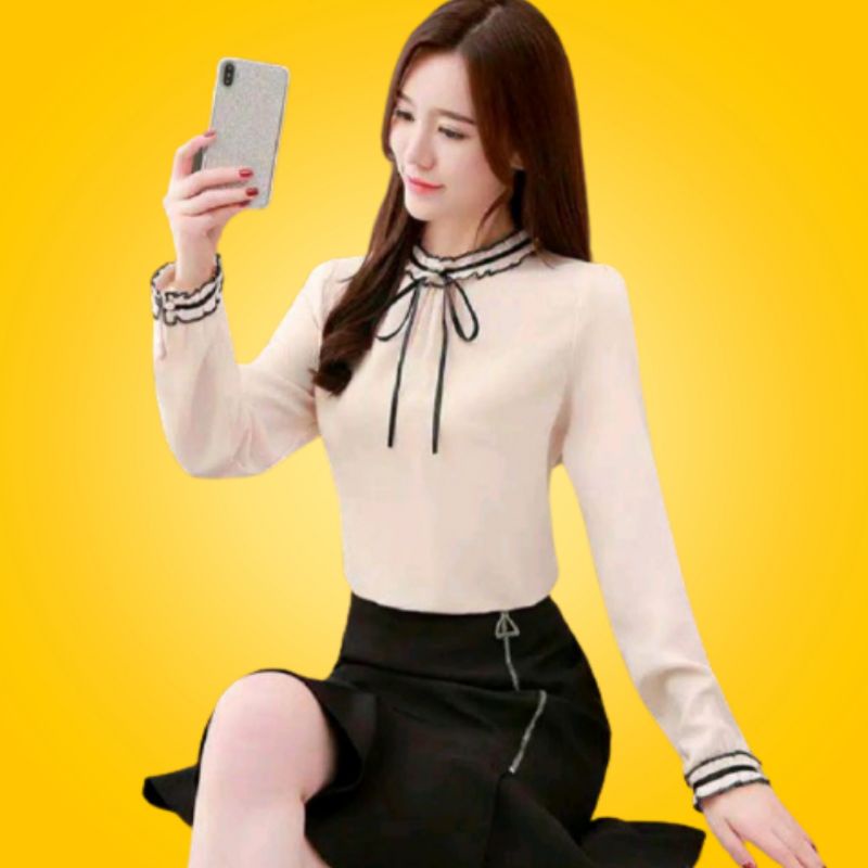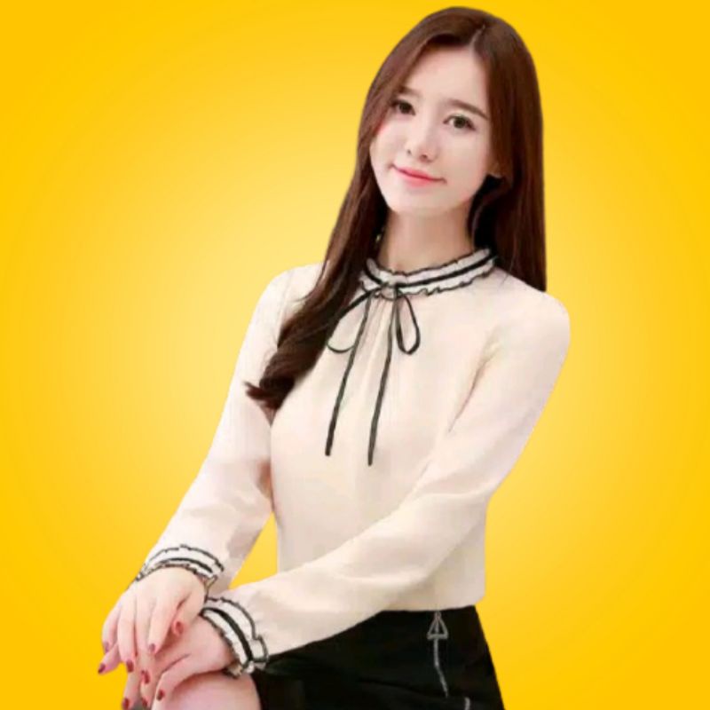 Kelebihan - Kelebihan membeli Blouse Wanita Polos / Blouse Putih Lengan Panjang Korean Style Variasi Pita Leher 5441 JOSEPHINE di Toko ini