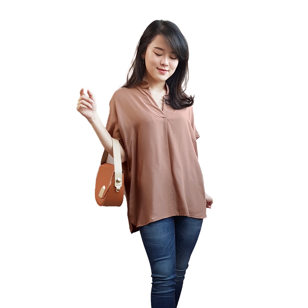 Blouse katun polos wanita bahan katun rayon BL10609MR kemeja wanita lengan pendek 10609mr