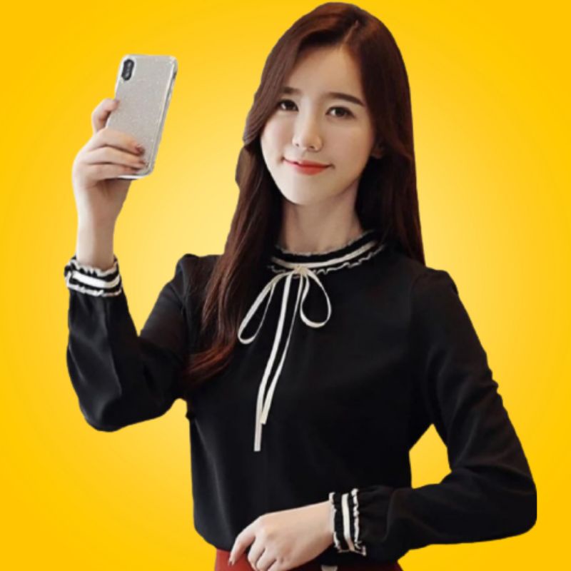 Alasan kenapa harus beli Blouse Wanita Polos / Blouse Putih Lengan Panjang Korean Style Variasi Pita Leher 5441 JOSEPHINE sekarang