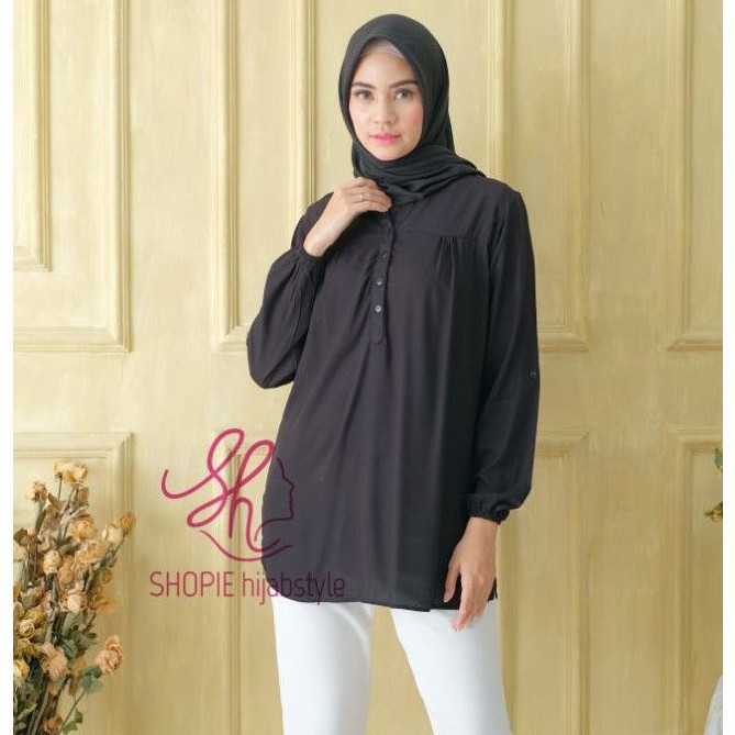 Blus Polos Hitam - Blouse Polos Rayon - Black - Fathin Basic - SHOPIE Hijabstyle - Polos Hitam