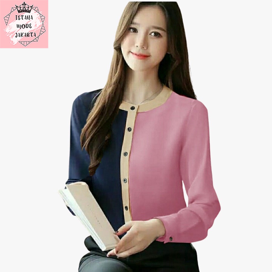 ISTANA MODE JAKARTA Jelin baju atasan wanita terbaru blouse korean style blouse wanita lengan panjang