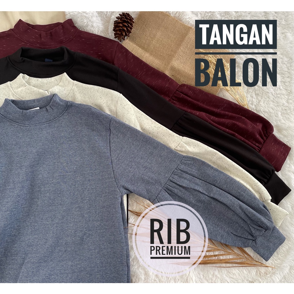 oversize Tangan Balon rib polos premium / blouse wanita / kaos tangan balon wanita oversize
