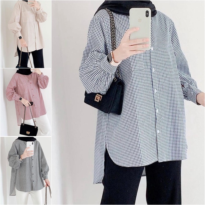 ilook | Una Top | Atasan Blouse Wanita Motif Kotak - Bahan Creap - Fit to L