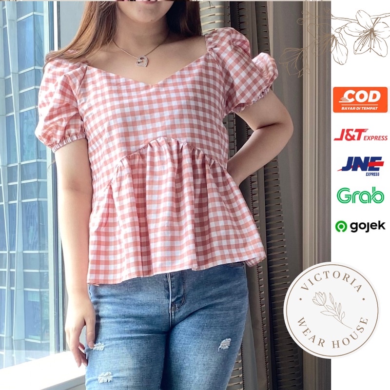 Ara Top - Blouse Lengan Balon / Blouse Katun / Blouse kotak / Atasan Katun / Atasan Wanita Blouse