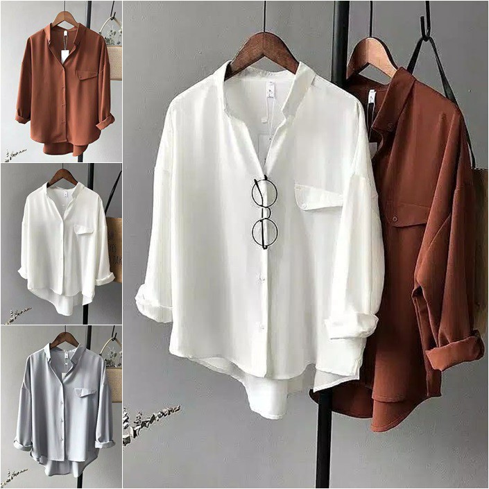 BLOUSE WANITA KOREA LENGAN PANJANG - KATERINA BLOUSE MANGO CREPE MURAH - ATASAN WANITA BLOUSE MURAH <