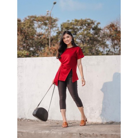 COTTONBELLS BLOUSE CASUAL WANITA JOLY SIDE SLIT TOP ( SP - B 9411)