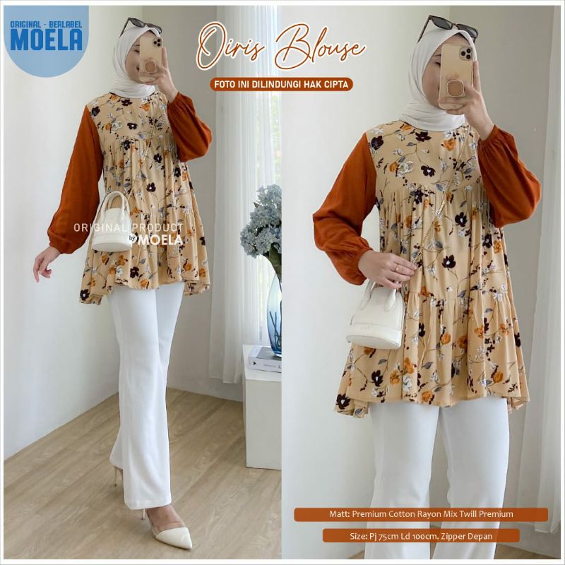 ELETA JIOLA KIKEN IMASI MIUTI NISLA OIRIS PIPRE BLOUSE BY MOELA BERLABEL | BAJU ATASAN BLOUSE WANITA JUMBO MOTIF BUNGA ABSTRAK CANTIK OOTD KEKINIAN TRENDY | LD 100