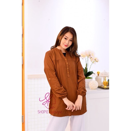 Blus Polos Millo - Blouse Polos Rayon - Coklat Muda - Blus Adem - Fathin Basic - SHOPIE Hijabstyle