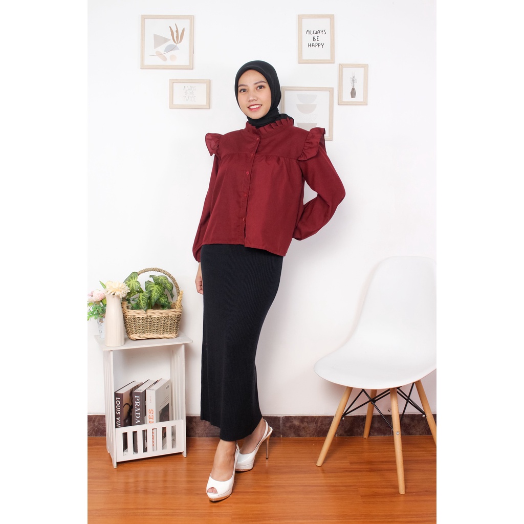 Ajwa Blouse Wanita// Atasan Rampel MOSSCREPE Premium