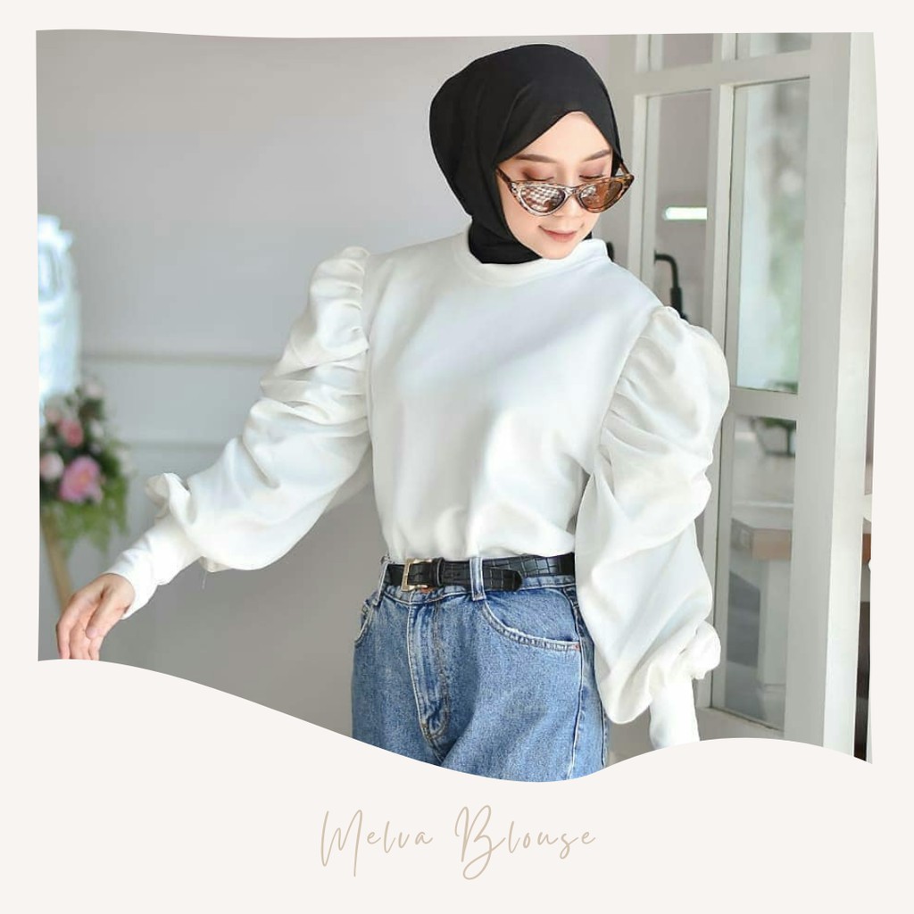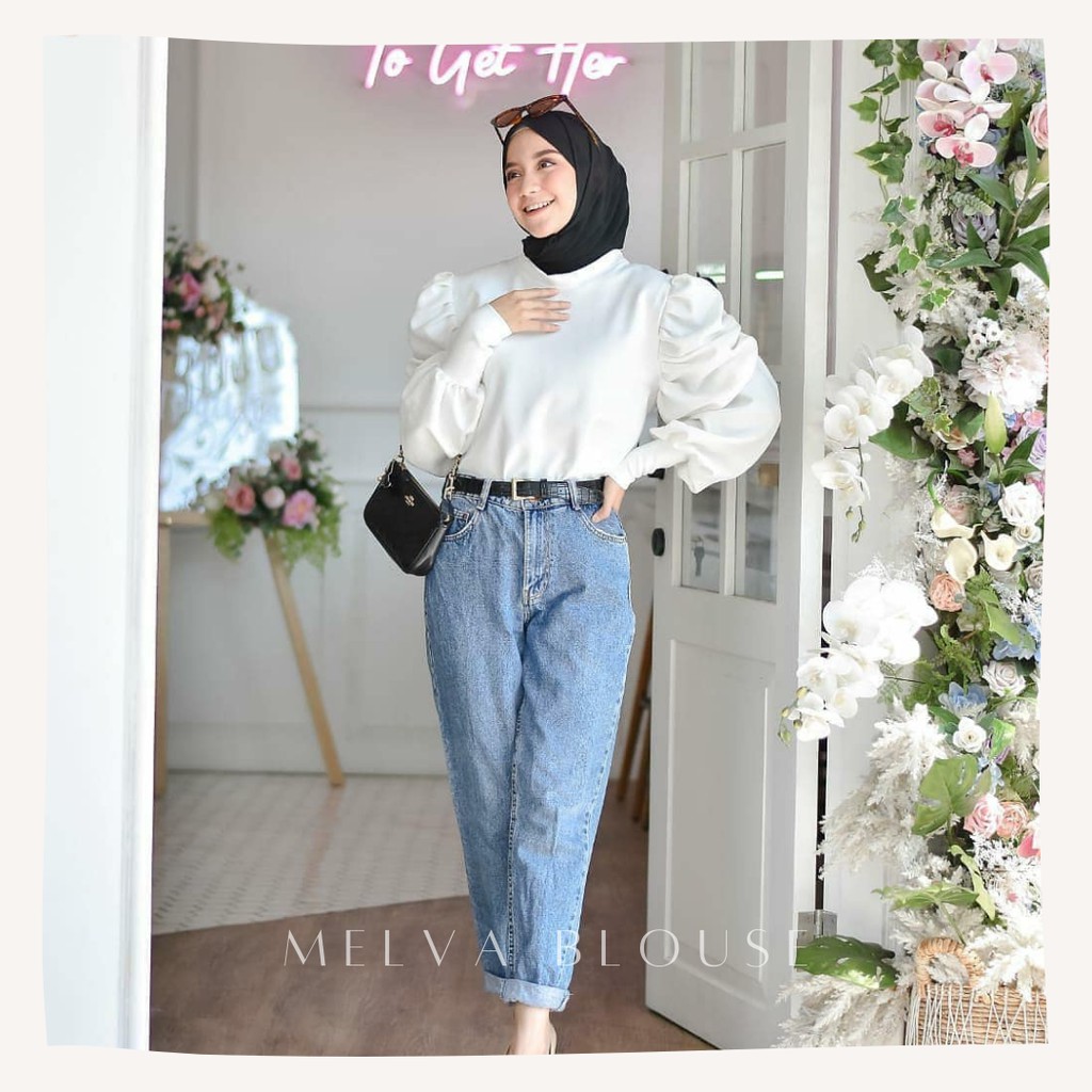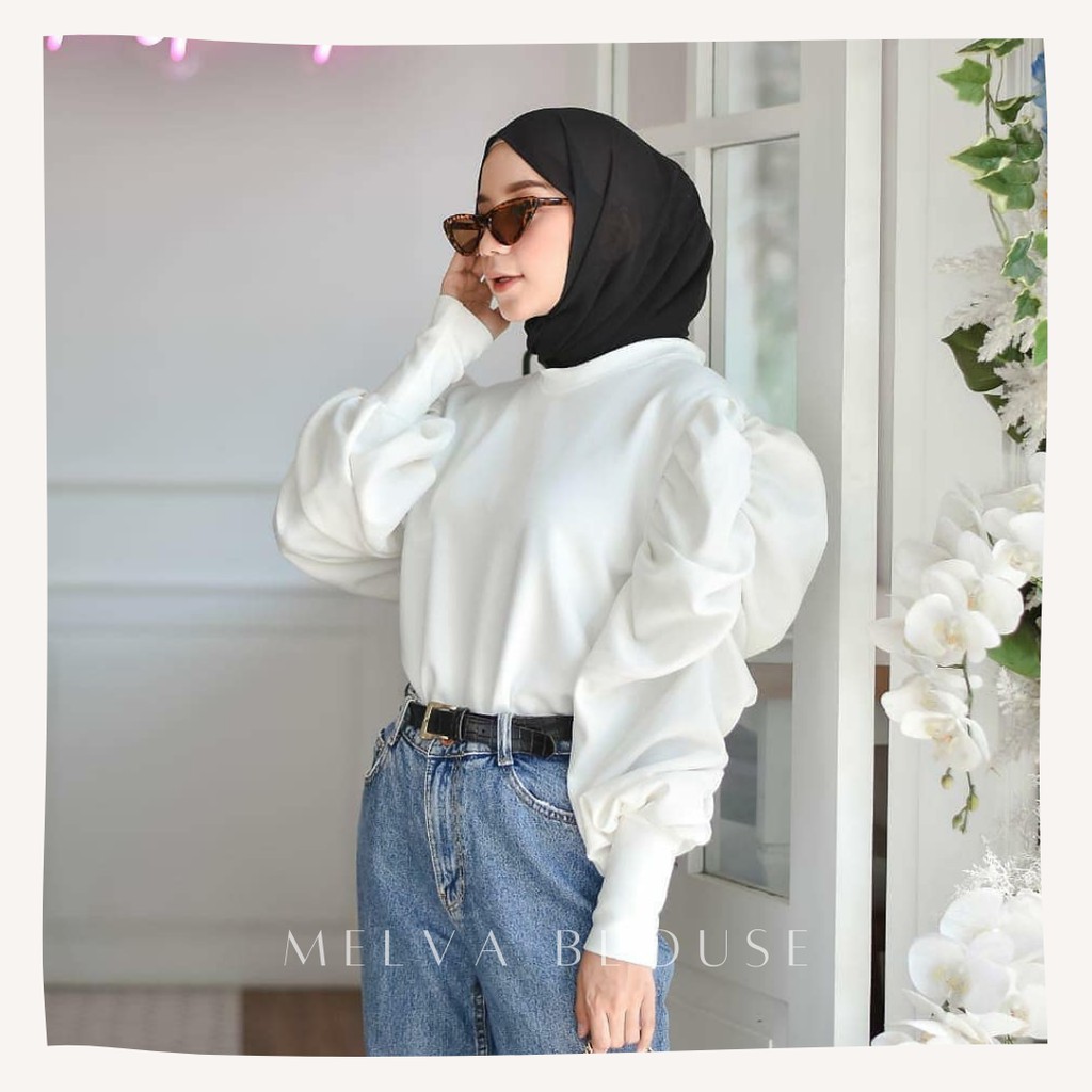 Harga melva blouse wanita lengan balon / atasan wanita terbaru / blouse balon jumbo / atasan muslim wanita